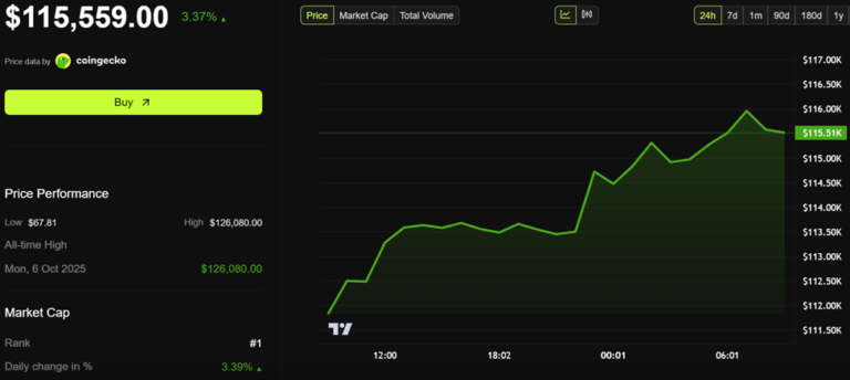 Bitcoin rose nearly 4% in the past 24 hours to trade at $115,559 as of press time. The move follows defunct exchange Mt. Gox again, delaying its long-awaited creditor repayments by another year, now set for October 31, 2026.