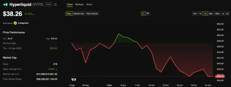 Hyperliquid (HYPE) Price Performance. Source: BeInCrypto MarketsSponsored