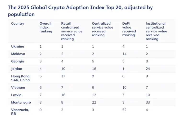 Hong Kong and China are ranked lower compared to other Asian regions in terms of global crypto adoption | Source: Chainalysis