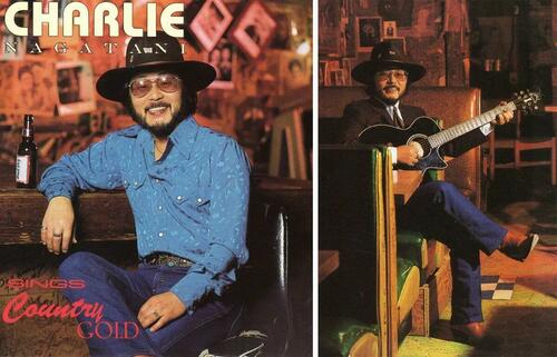 A detail from the front and back cover of Charlie Nagatani’s 1992 studio album “Charlie Nagatani Sings Country Gold,” which features Emmylou Harris, Bill Monroe, the Osborne Brothers, and Porter Wagoner. termite/Fuji Music