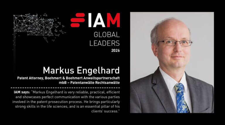 Dr. Markus Engelhard is a partner in the pharma/life sciences group of Boehmert & Boehmert. He studied biology, chemistry, and biochemistry at the University of Cambridge, UK, the University of Frankfurt am Main, and the University of Witten-Herdecke. After graduation, he obtained his PhD from the University of Cambridge. Markus Engelhard is active in all fields of life sciences, pharmacology, and biotechnology, having a particular focus on therapeutic biomolecules and pharmaceutically active agents.