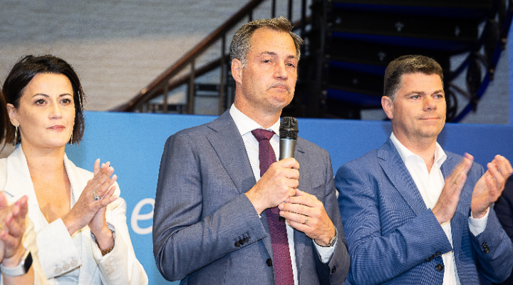 Belgian Prime Minister Alexander De Croo, center, in Brussels, June 9, 2024. Photo: BELGA via Reuters Connect