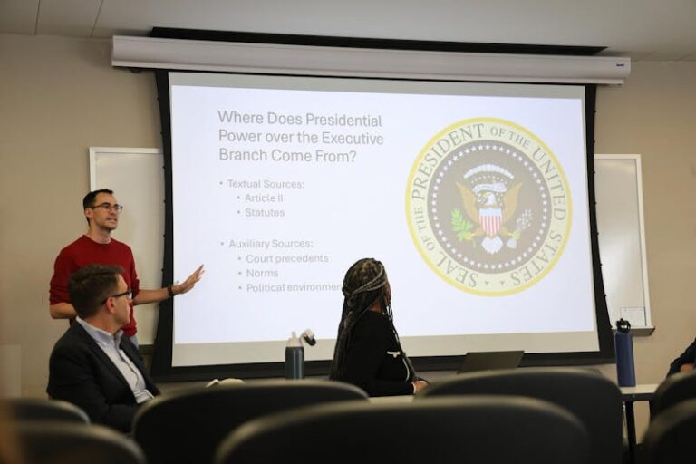 Bolton emphasized the connection between contemporary political issues and “timeless” debates about presidential power. He posed questions that would guide classroom discussions around the legality of presidential decisions.