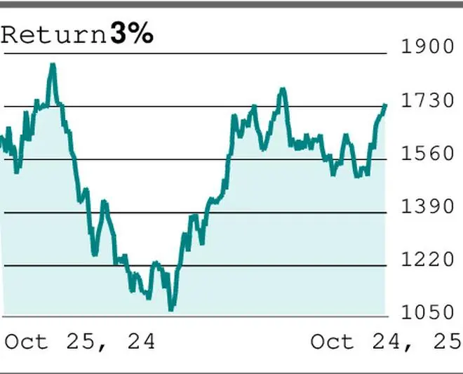 Prestige Estates Projects (₹1,752.95): The outlook is bullish. The strong rise above ₹1,650 this month indicates a bullish trend reversal. It marks the end of the downtrend that was in place since June last year. Cluster of supports are there in the broad ₹1,700-1,600 region now. The stock can rise to ₹2,000-2,100 over the next six months.